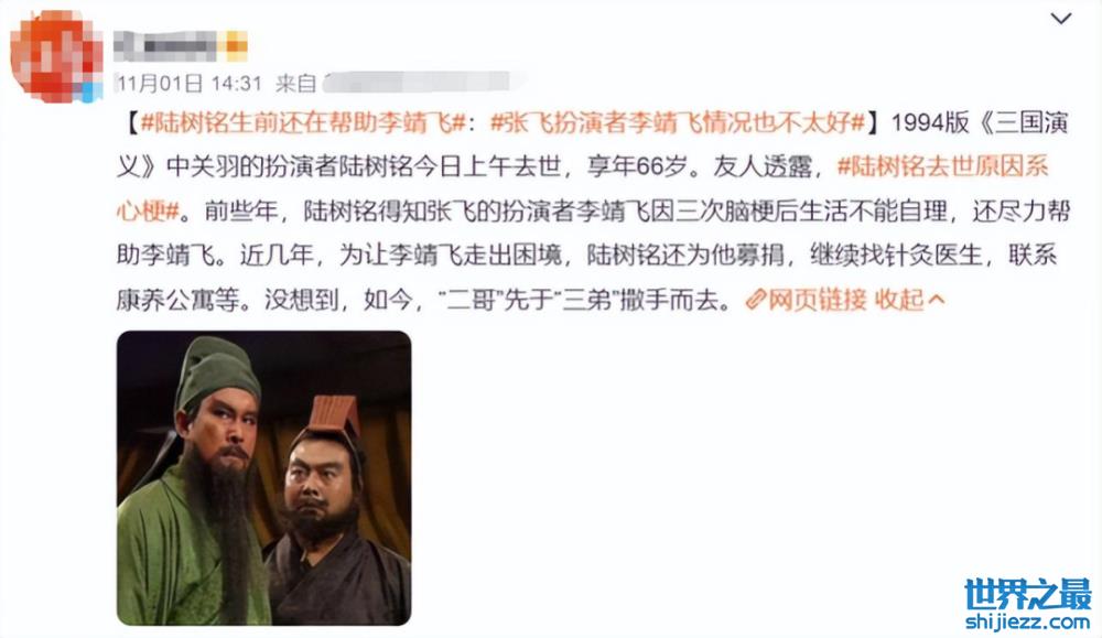 听闻这个消息,“大哥”刘备的扮演者孙彦军老师晒出两人的合照,说不敢相信预感的事会成真。。。靖飞弟还是走了。。。此时已无更多的语言表达了。。愿天堂不再有痛苦。。靖飞弟一路走好!!!从孙彦军老师的文字中能感受到他此时的难过。