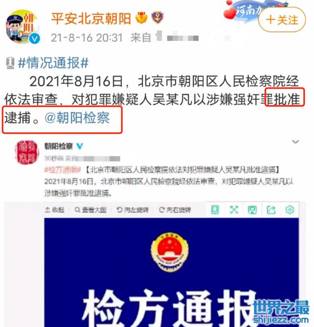 2021年8月16日,警方发布第三份官方声明,经过警方依法调查,吴亦凡最终被证实涉嫌强奸罪被刑事逮捕。2022年6月10日,朝阳法庭发布一审通知,表示因涉及受害者隐私,案件采取不公开开庭审理方式。