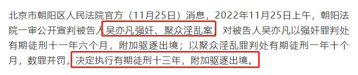 11月25日,星期五,是个值得吃瓜的好日子。前有吴亦凡一审结果出炉,数罪并罚判处有期徒刑13年,出狱后驱逐出境,外加偷漏税被罚6亿,这下是彻底洗白了。