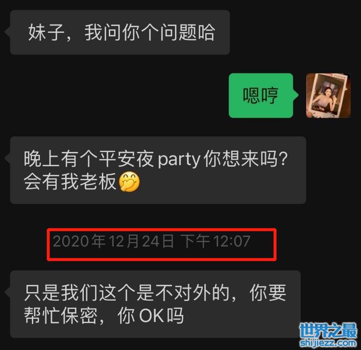 在都美竹那场酒局之后的第15天,吴亦凡又安排了一场犯罪party。“Brandy_trb”“不熬夜的小悦”两位爆料者,同时放出聊天记录,称在2020年12月24日同时被吴亦凡工作人员邀请,参加吴亦凡的平安夜party。