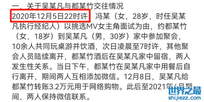 这场酒局的时间线,是当初“锤凡主力”都美竹提供的。2020年12月5日,都美竹在内的10多位女性,被吴亦凡经纪人以挑选MV女主角为由,约到吴亦凡家中参加聚会并饮酒。