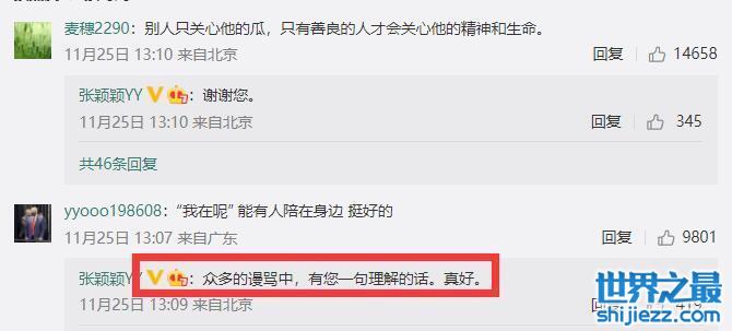 更加有意思的是,张颖颖在另一平台的官宣后,汪小菲在11月26日凌晨突然表白汪小菲:“谢谢你陪伴着我,谢谢你陪我生活”,这就有意思了,真怀疑这是张颖颖半夜拿着汪小菲手机发的评论。不然以汪小菲的“发疯文学”,也说不出这样一段话吧。