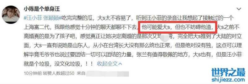 网友解读得似乎很准确:“他可能爱着大S,但也不妨碍他渣,又菜又爱玩”,就看汪小菲在V博上的疯癫发言,再加上他跟张颖颖说的那些录音中的话,一边爱着前妻大S,一边又让张颖颖堕胎。