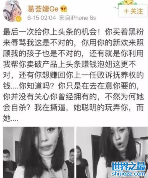 在汪峰和章子怡再婚后,葛芸婕又把矛头对准了章子怡,也是经常在社交平台上发文diss对方。