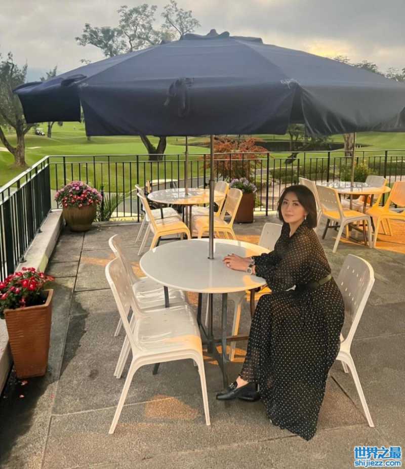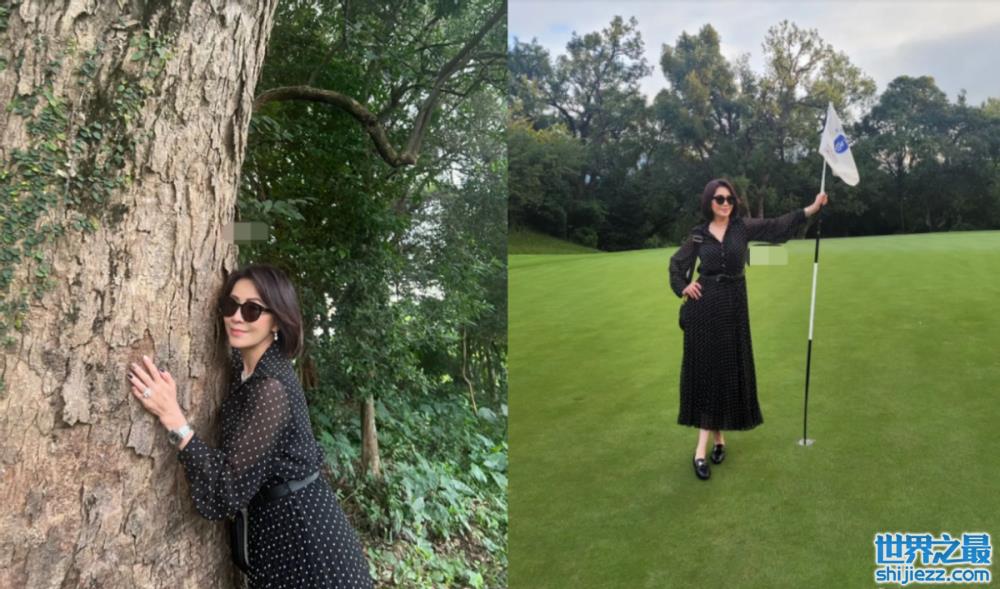 从其他照片来看,刘嘉玲与友人们应该是在高尔夫球场。不见一众人帅气打球,而是看见戴着墨镜的刘嘉玲俏皮贴着球场附近的大树,感受大自然的美。刘嘉玲还与球场上的高尔夫杆旗合影,右手叉腰左手倚杆,姿势很是潇洒。
