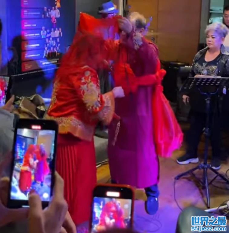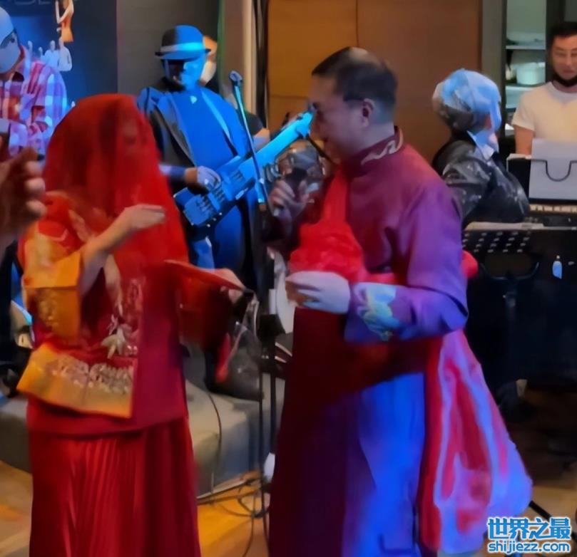 从曝光的画面来看,结婚庆典上十分热闹,不少亲友都到场为廖伟雄夫妻庆祝,而他们俩则是身穿了一袭喜庆的中式礼服,看起来也是格外有趣。