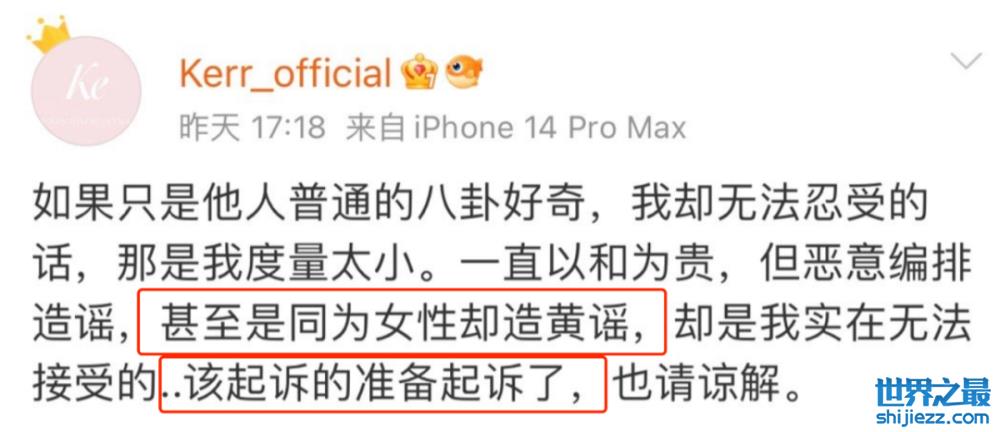 娱乐圈每天都不消停,当谣言满天飞时,明星也忙着辟谣。一、黄晓明绯闻女友否认黄晓明绯闻女友、网红叶珂发文表示:“同为女性却造黄谣,该起诉的准备起诉了。”