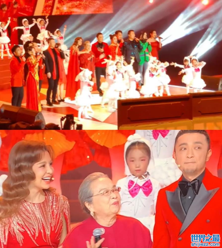 虽然工作人员发来的视频距离很远,但还是能一眼看到站在C位的李明启老师,她身穿大红色外套,整个人透出慈祥与喜庆,尽管已经86岁了,看上去还是精神矍铄。台上的歌手们一句接一句唱歌,台前伴舞的小孩子们穿着兔子衣服,不仅让火火嗅到了浓浓的年味儿。