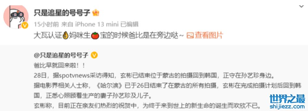 如今终于等到妻子平安顺利的诞下儿子,想必玄彬一直高悬的心终于可以彻底放下,两人喜迎“小王子”的消息也得到了海内外网友的诚挚祝福。