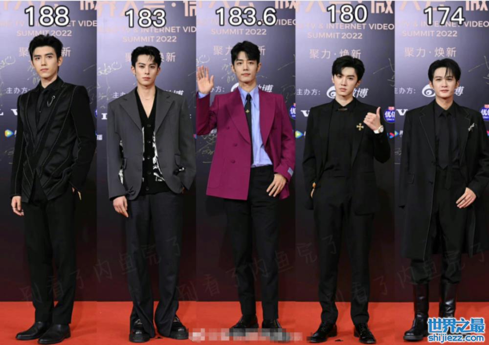 直观地对比下谁在说谎可以说是一目了然了。1米88的陈飞宇确实是“鹤立鸡群”,1米83和1米83.6的王鹤棣和肖战看起来差别不大,但1米8的陈哲远却比肖战矮了快半个头,反而是1米74的檀建次看起来和陈哲远差不多。