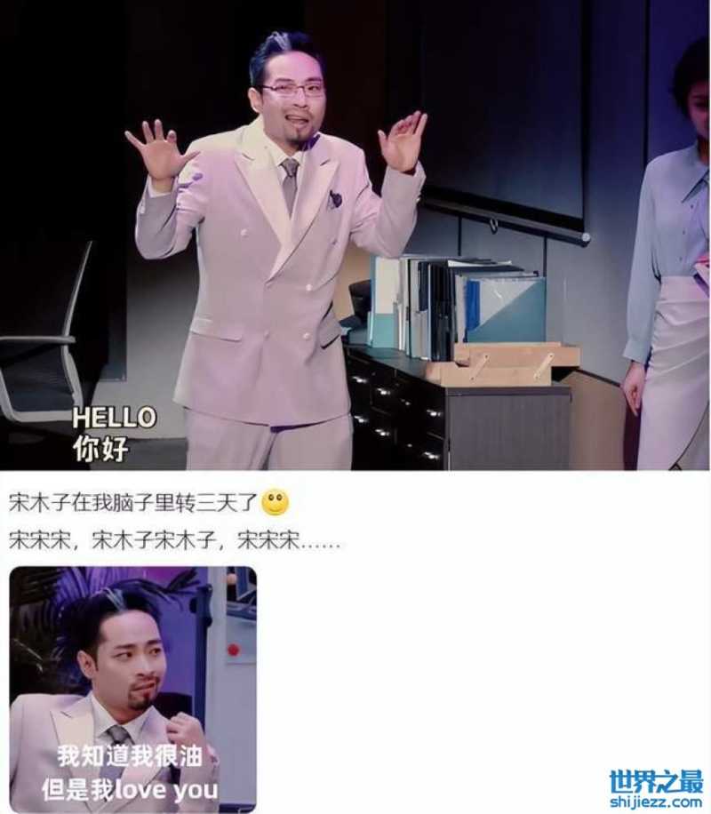而宋木子这位喜剧演员一直是个人风格比较强烈,穿着粉色小西装,梳起油头,再随着音乐扭动身体,做出油腻的表情,这样一位非典型的霸总就拿捏好。在编剧创作之中为他量身定做的《宋木子之歌》也是让很多观众过耳不忘,“宋,宋,宋,宋木子”可以说是我心中的的本场最佳,简直不要太上头!不少网友都反馈观看之后满脑子都是他的《宋木子之歌》。