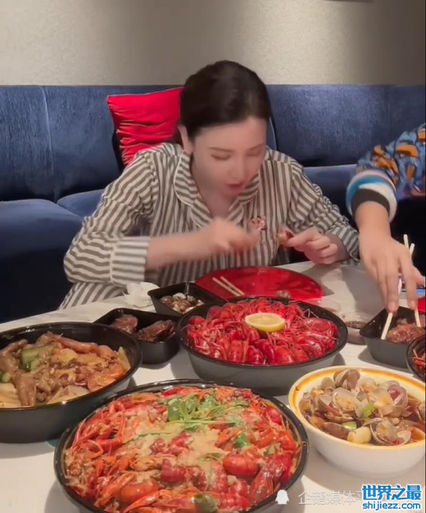 张萌请员工吃豪华外卖!穿睡衣坐地上不嫌脏,吃虾啃兔头太真实 ...