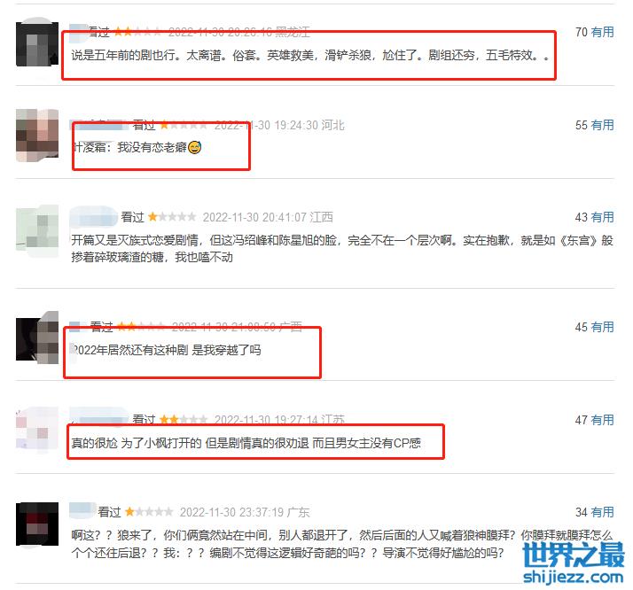 再看看观众的观后评价:离谱、俗套、2022年居然还有这种剧,这总不是小8在尬黑吧?