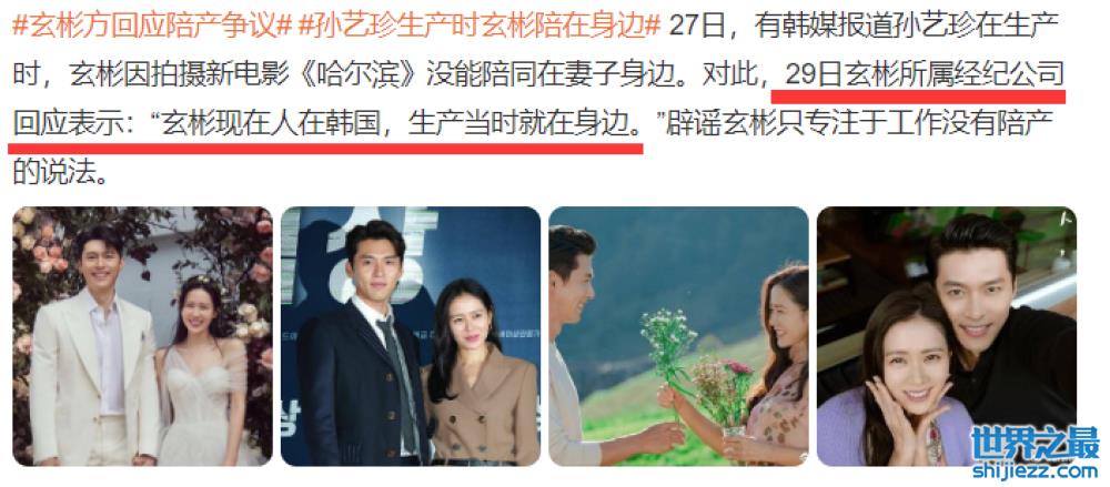 而得知孙艺珍要提前生产,人还在蒙古的玄彬在生产前一天(11月26日)火速赶回,陪在孙艺珍身边一起迎接儿子的出生,之前有爆料说玄彬没能陪孙艺珍生产,对此,玄彬的经纪公司予以否认,辟谣玄彬只专注于工作没有陪产的说法。