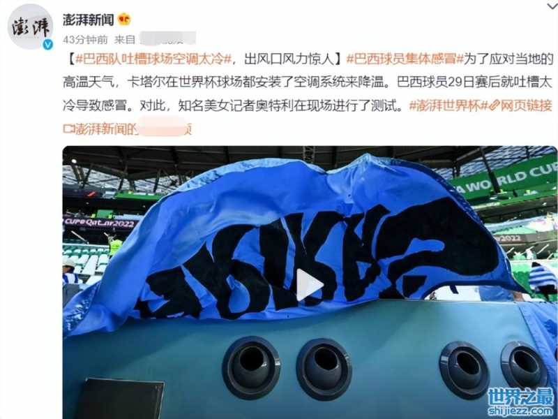 比赛才刚开始没多久,据说现在已经有足球选手吐槽球场空调太冷了!冷?要知道卡塔尔可是最高温度能超过50摄氏度的热带地区呀!