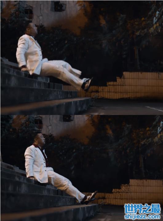 贾冰摊在台阶上,没有手脚并用爬走,而是在台阶上抽搐好几番,让人爆笑不已。