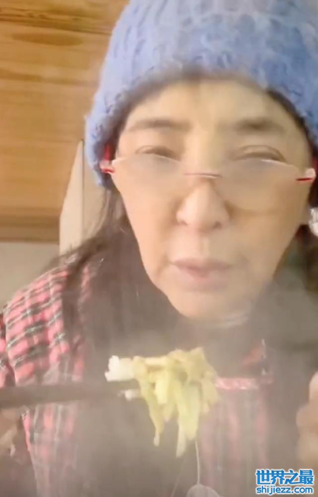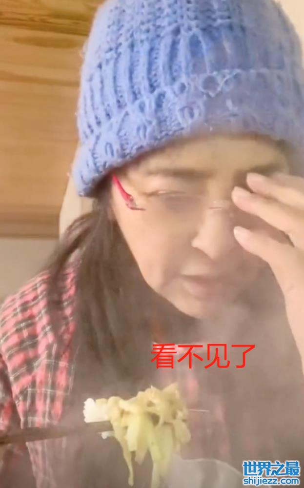 因为天气太冷的关系,李勤勤刚刚把食物端到面前,眼镜就被覆上一层白茫茫的雾气,为了看清面前的镜头,李勤勤不得不摘下自己的眼镜,一边吃一边和大家介绍自家刚刚出炉的美食。