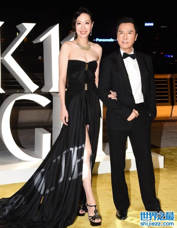 当日到场的还有甄子丹夫妇,甄子丹太太汪诗诗不愧是模特出身,即便是长裙仍然包裹不住她那绝佳的身材比例,简直是优雅大气的典范。反倒是一旁的甄子丹,看上去竟然比太太矮了一头,一身黑色西装,还真有点“女强男弱”的意思了。