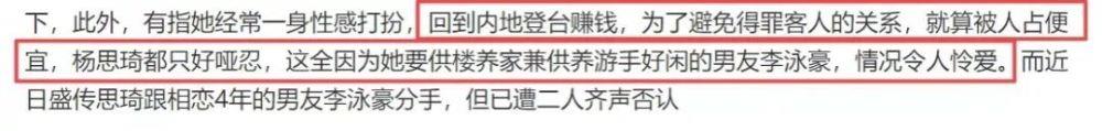 哪怕传闻男友沉迷赛车,几万块换一个轮胎,需要杨思琦供养,她也照样出面力挺。