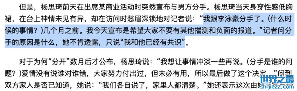 杨思琦说两人早几个月就已分手,也达成了共识。