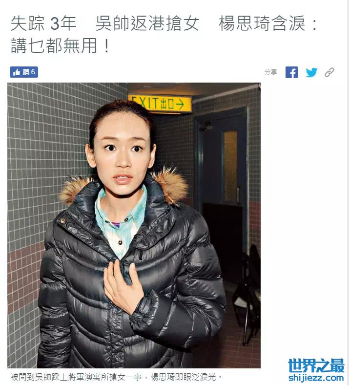 港媒曝出两人分手,是因为杨思琦劈腿老同学——前香港跳水队成员吴帅,还怀上了对方的孩子。
