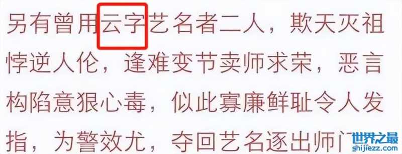 其中特意强调了“云字艺名”两人,文中还用上了【欺师灭祖】、【悖逆人伦】、【卖师求荣】、【意狠心毒】等严重词汇,个中曲折不必细说,光看字面意思大家也基本了然于胸。