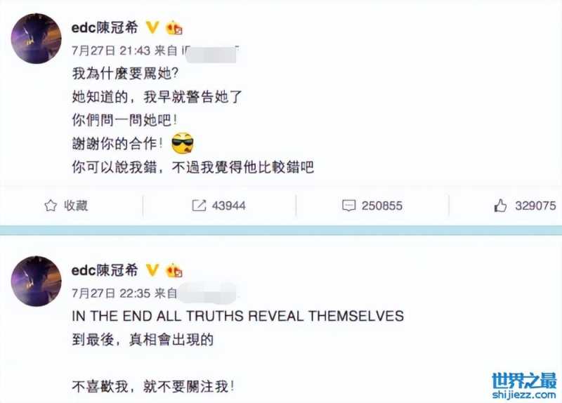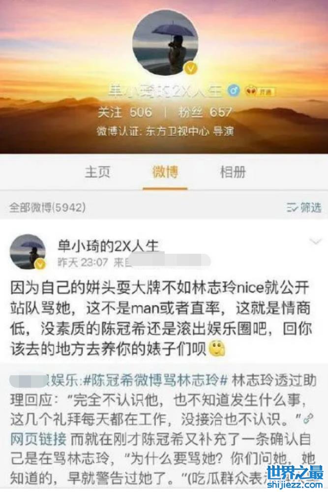 当时陈冠希在社交平台连续发布多条侮辱性极强的动态,矛头直指林志玲,看得大家一头雾水。