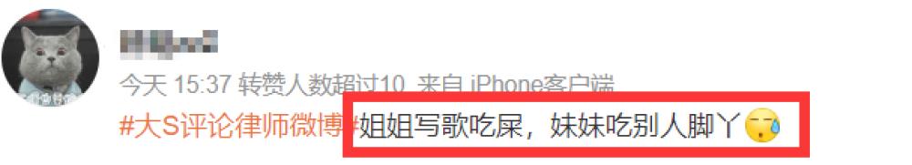 除了小S之外,大S的一些过往黑历史也被网友扒出,此前大S曾自己创作了一首歌曲,这首名义上是对爱人表白的歌曲,歌词更是突破下限,大S在歌词中曾写道,可以大口吃心爱之人的翔,还可以帮对方干掉痛恨的人,恶俗且直白的用词,再度引发外界网友的非议。
