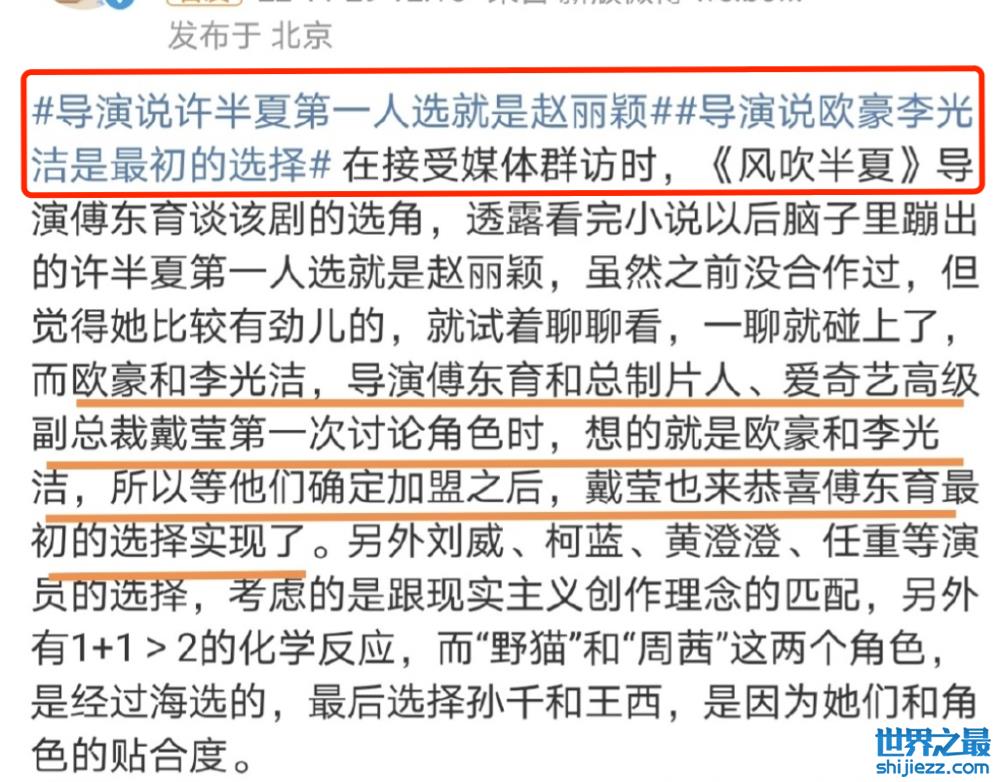 《风吹半夏》原来叫《野蛮生长》,开拍之初,网上疯传王一博会来演男二。赵丽颖粉丝和王一博粉丝还因此闹得很不愉快,因为双方粉丝都不想偶像再合作。