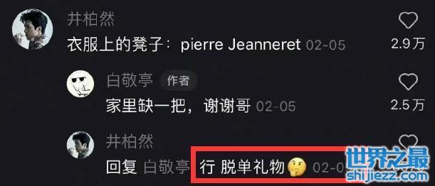以此为线索,有网友更是扒出两人交往的时间或许更早,甚至要追溯到今年2月,因为当时井柏然曾公开赠予白敬亭脱单礼物,还是一把大有来头的椅子,而送椅恰好是“宋轶”名字的谐音。