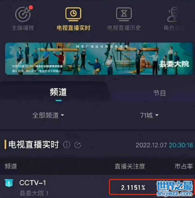 《县委大院》现在直接破2,所以成了2022年央一播出的16部剧集中排名第一!