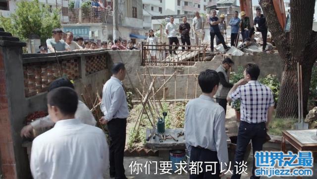 细节是老邱家门口看热闹的群众,尤其是站在废墟堆里的大爷们。