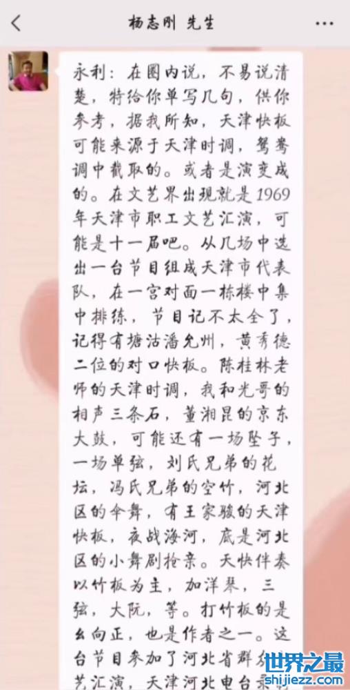 另外,还公开了杨志刚老师的聊天记录,即便在生命的最后阶段,杨志刚老师还在讲述有关天津快板的一些知识,把自己所知道的都分享出来。