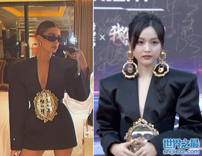 吴宣仪之后又跟国外女星Hailey Bieber撞了同款深V西装裙,再次悄悄拉紧了开缝宽度。别人穿是有料身材隐约可见,而她却穿确实肉眼可见得毫无起伏,还穿成了乡村女企业家既视感。