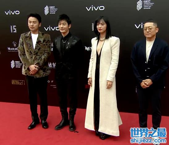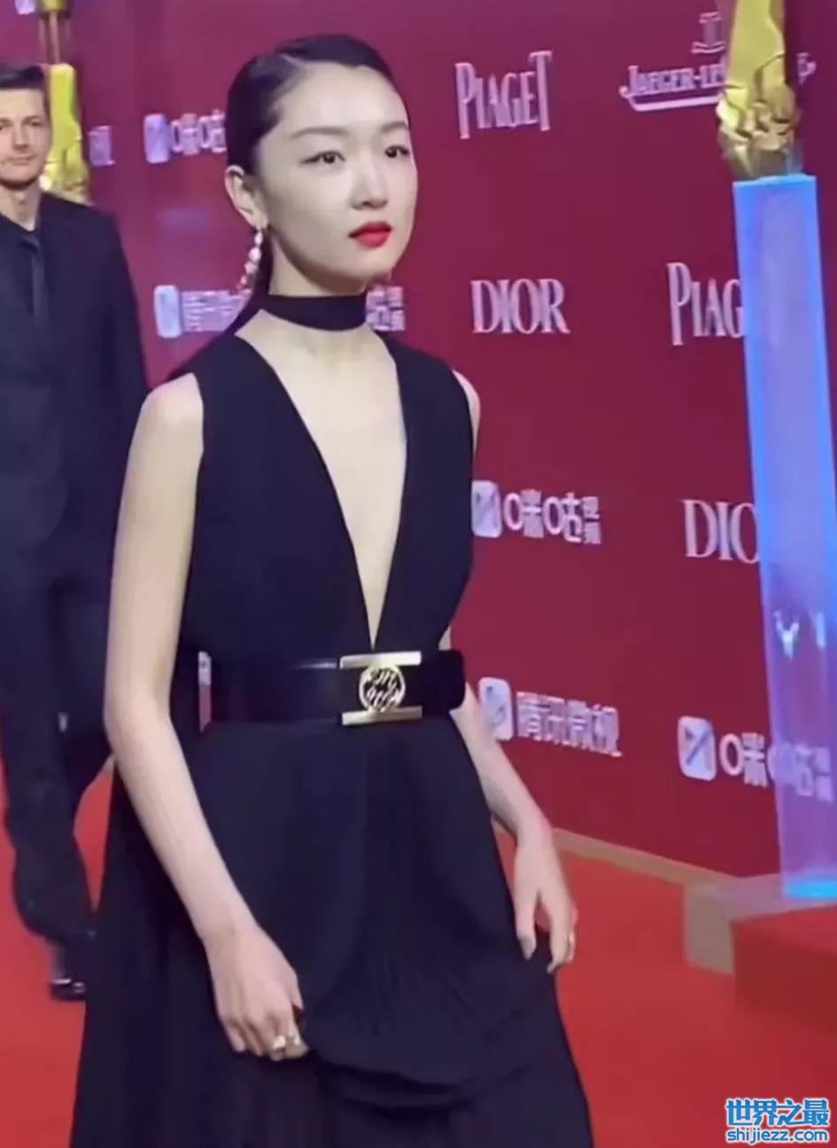 胡冰卿也是干瘦身材,比起凹凸有致的女星,她是毫无优势,可她偏偏在红毯上挑了这么“上下失守”的性感礼裙。黑色礼服低领口加上高开叉,露了胸又露了腿,却没有美感。