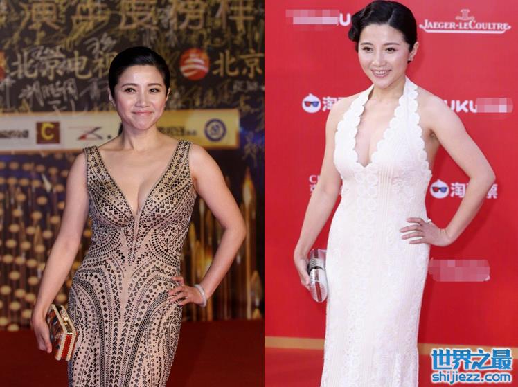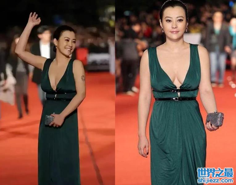 她穿不出43岁的郝蕾那种丰腴的风韵,甚至还只能小心翼翼地将深V领口缝小,差距一下就出来了。
