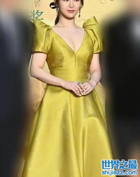 杨紫在红毯上海其实也偏爱深V款,但却只有选择款式的勇气,没有大方展现的胆气。她每次穿深V都要画蛇添足的缝领口。