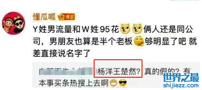 懂瓜呱给出了几个关键词:Y姓男星,W姓女星,两人在同个公司,吃瓜网友迅速找出了对应的两位:杨洋和王楚然。