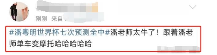 世界杯期间,潘粤明则是变身预测王。