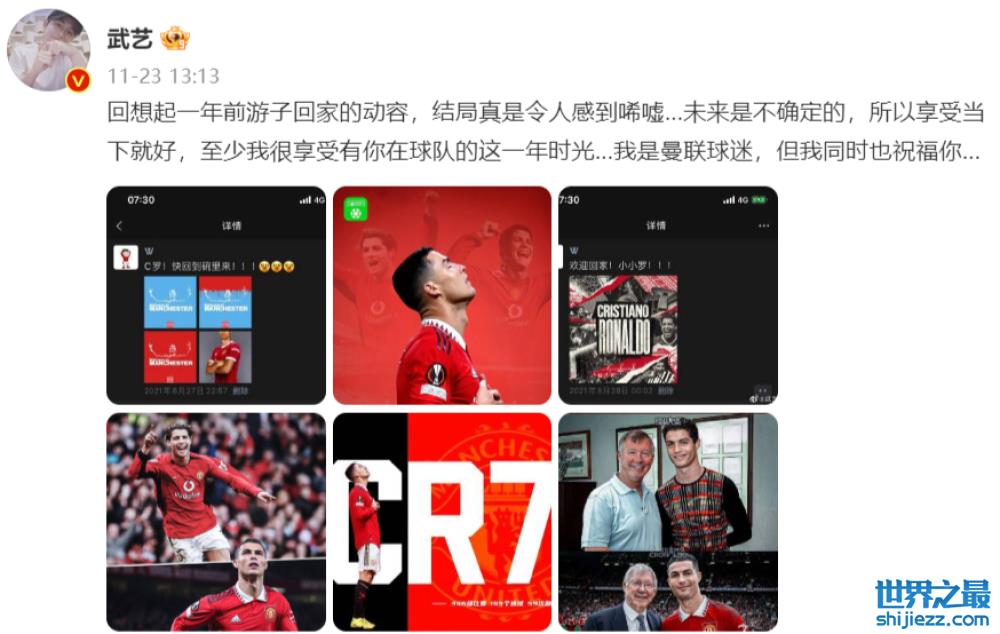 在这之前,武艺也曾发文支持C罗,希望他享受当下就好,也祝福C罗。