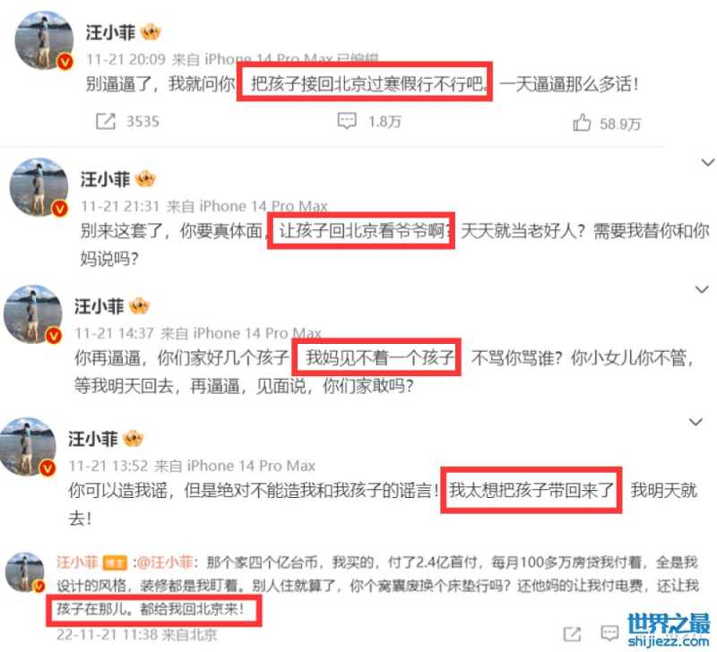 而汪小菲之前也曾多次发文,要两个孩子回北京过寒假,也在极力争取孩子的抚养权,这和大S说的完全不一致。