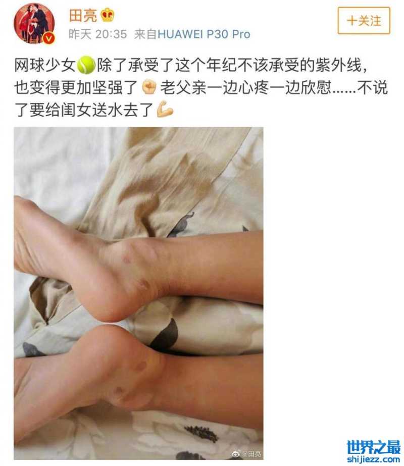 之前森碟因为打网球还双脚起泡,田亮看在眼里疼在心里,但身为父亲的他认为女儿承受这些后会变得更坚强,他陪着女儿一起训练。