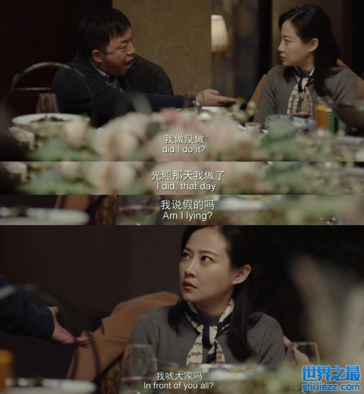 整个如同教科书般的演技场景,充满着众人的叫嚣和争论,极力掩盖的圆谎,被揭穿后的尴尬,人性的虚伪、虚荣展现得淋漓尽致。