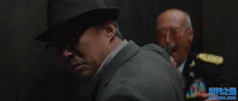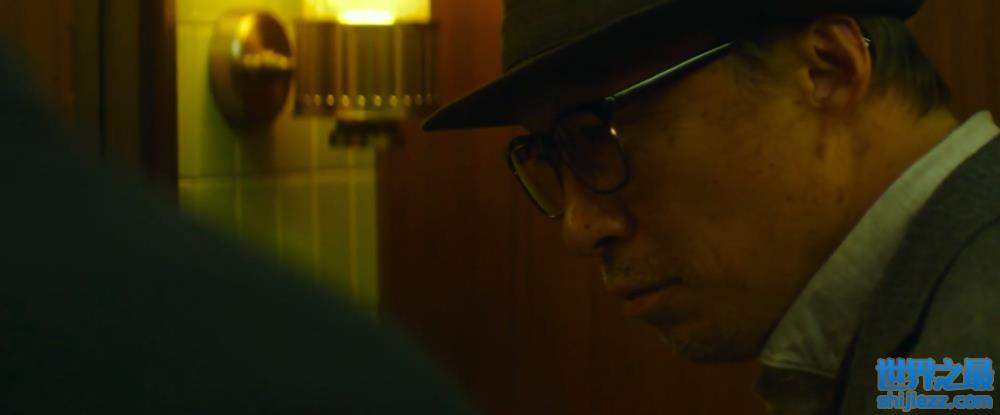 在韩弼珠追杀日本商人东条尚志的这一幕中,二人在电梯间里激斗,本来拿枪堵着东条的嘴的弼珠占据着上风。