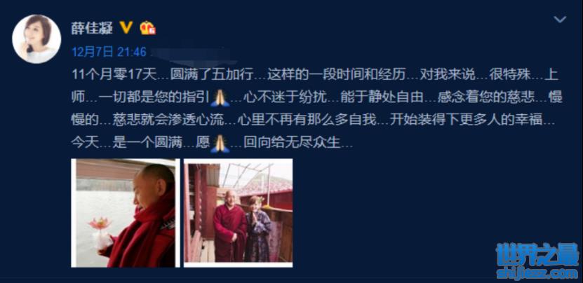 当时,薛佳凝晒出自己的修行照,表示自己已经修行了近一年。