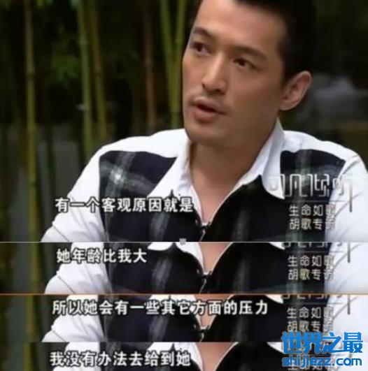 谈到两人分开的原因,胡歌说有一个客观的原因是薛佳凝年龄比自己大,会有一些其他方面的压力,当时自己没办法给到她。