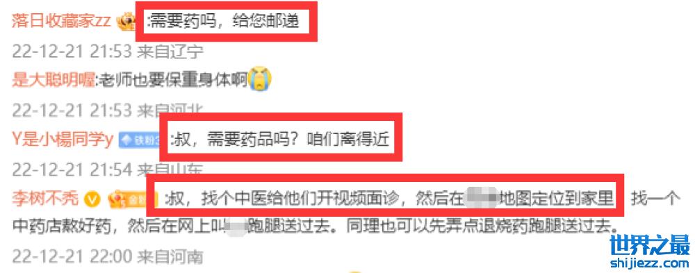 在王劲松老师透露父亲的情况后,不少网友也纷纷留言,问他需不需要药,还有网友看王劲松老师的定位地址在江苏,留言说“叔,我离得近,需要药品吗?”想必是想开车直接给王劲松送药去,还有网友说让他开视频面诊,还有让他去医院治疗,大家都希望他的父亲能够扛过去,也都伸出爱心之手。