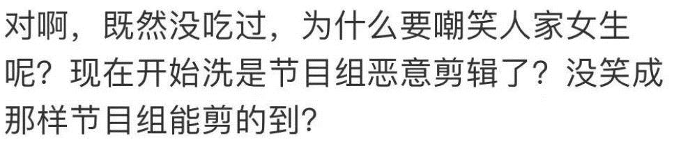还有网友称熊梓淇这是强行洗白,如果他真的没有笑,节目组再怎么剪辑,也不会有笑的画面。还有网友直接反讽熊梓淇:“懂了,节目组用了ai换脸,哥哥根本没有嘲笑”。
