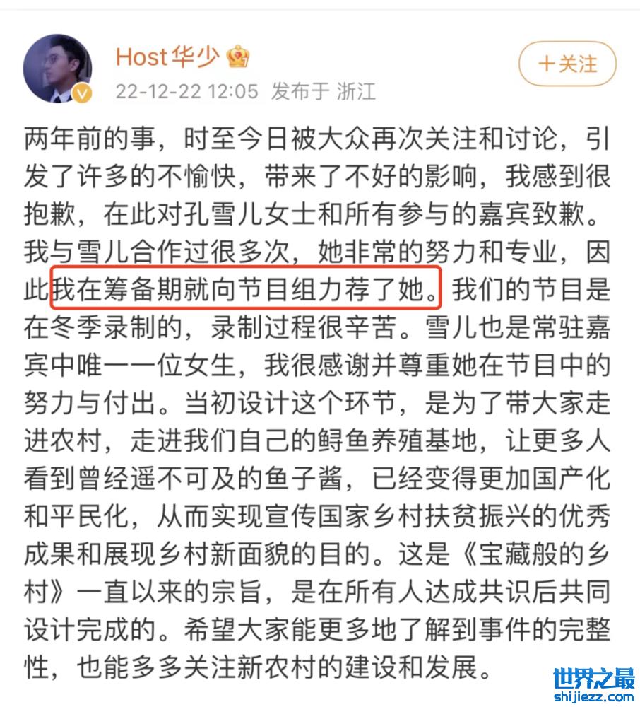 或许实在是迫于舆论压力,在其他几位男嘉宾都回应了之后,华少姗姗来迟地回应此事,在回应中,华少还透露是自己向节目组推荐了孔雪儿。