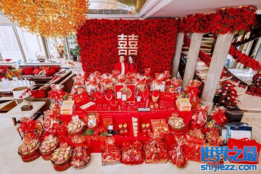 一开始很多人以为他俩只是玩玩,没想到最后真的走到了一起。在下聘的时候就看出了郭浩泉的真心,各式礼品,金银珠宝,场面相当震撼,原来这就是有钱人的排场。